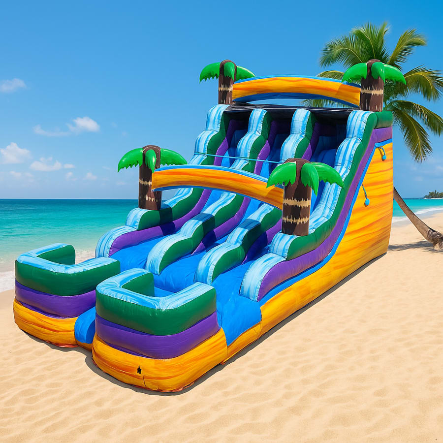 Bring bright, tropical energy to your next celebration with the 20ft Tropical Marble Duo. This dual-lane waterslide delivers fast races, big splashes, and eye-catching tropical marble graphics with inflatable palm trees. Safe, sanitized, and built for smiles — it’s ideal for kids party rentals and family gatherings across the area. ๐